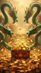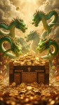 Symmetry Composition of Five Green Dragons Protecting Chinese Gold Coins