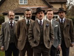 Five Gentlemen in Tweed Suits in Front of English Cottage