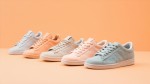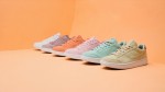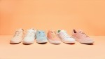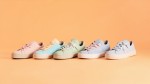 Pastel Sport Shoes Aligned on Orange Studio Background