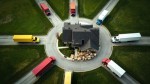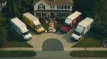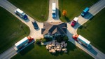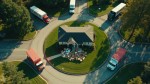 Top View of Colored Delivery Trucks and Packages at Suburban House