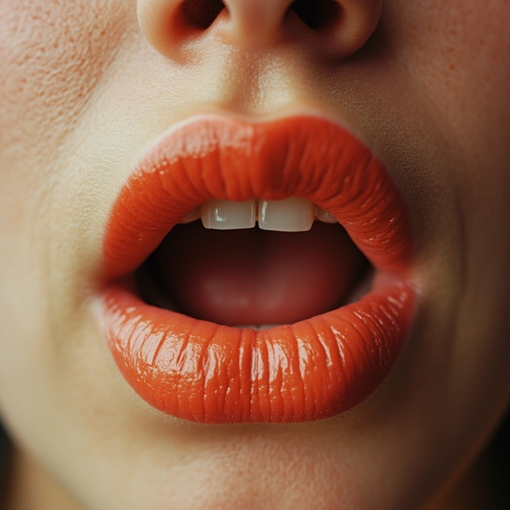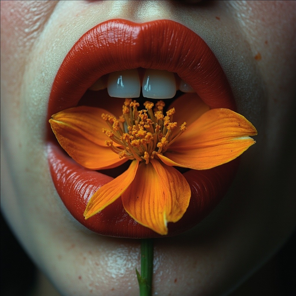 Woman with Flower Between Lips