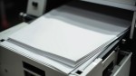 High Contrast Image of White A4 Posters Stack on Printer Tray