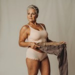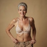 Humorous Woman Over 40 Posing with Pants in Underwear