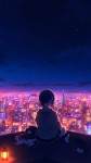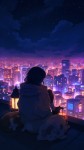 Anime Girl on Rooftop Overlooking Neon City at Night