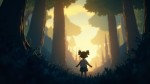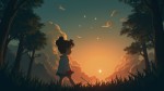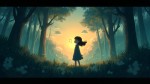 Animated Style Image of Young Girl Walking Alone in Forest at Dawn Listening to Song
