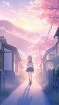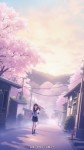 Anime Girl in School Uniform Walking in Cherry Blossom Path