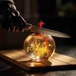 Glowing Glass Dragon Fruit on Cutting Board with Knife