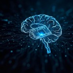 Abstract Artificial Intelligence Brain Circuit Board with Data Streams