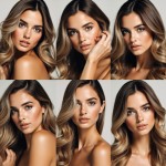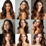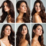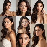 Series of Elegant Young Women Portraits with Healthy Hair and Radiant Skin