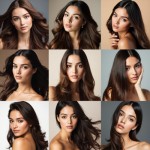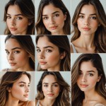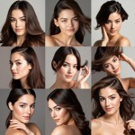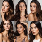 Series of Youthful Elegant Women Portraits with Healthy Hair and Radiant Skin