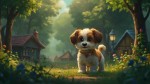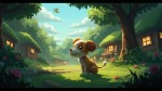 Indie Animation Style of Puppy, Forest, Village and Grandmother