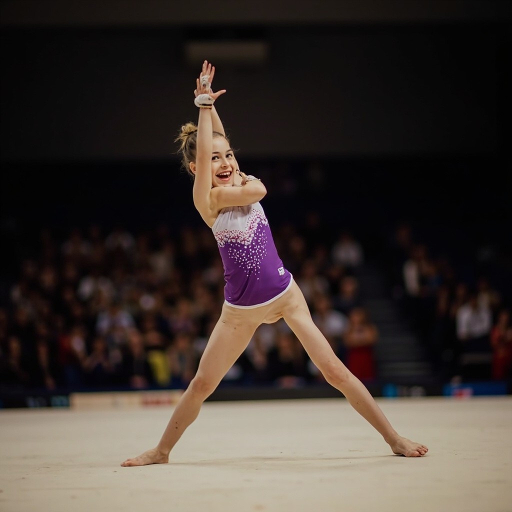 Flexible Gymnast Girl in Bodysuit Performing Split