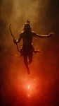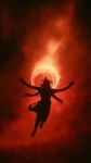 Intense Scene of Hanuman Ji Leaping Across Realms with Fiery Shadows