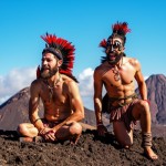 Mexican Warriors Resting behind Two Volcanoes, Happy Blue Sky