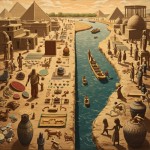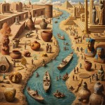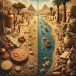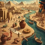 Side-by-Side Illustration of Harappan and Egyptian Civilizations Focused on Artifacts and Daily Life