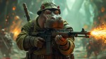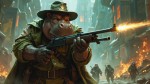 Fantasy Hippo in Colonial Outfit with Magic Rifle, DnD Art Style Background