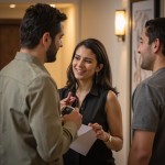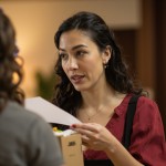 Latin Hotel Employee Informing Guests about Grocery Delivery