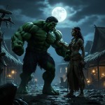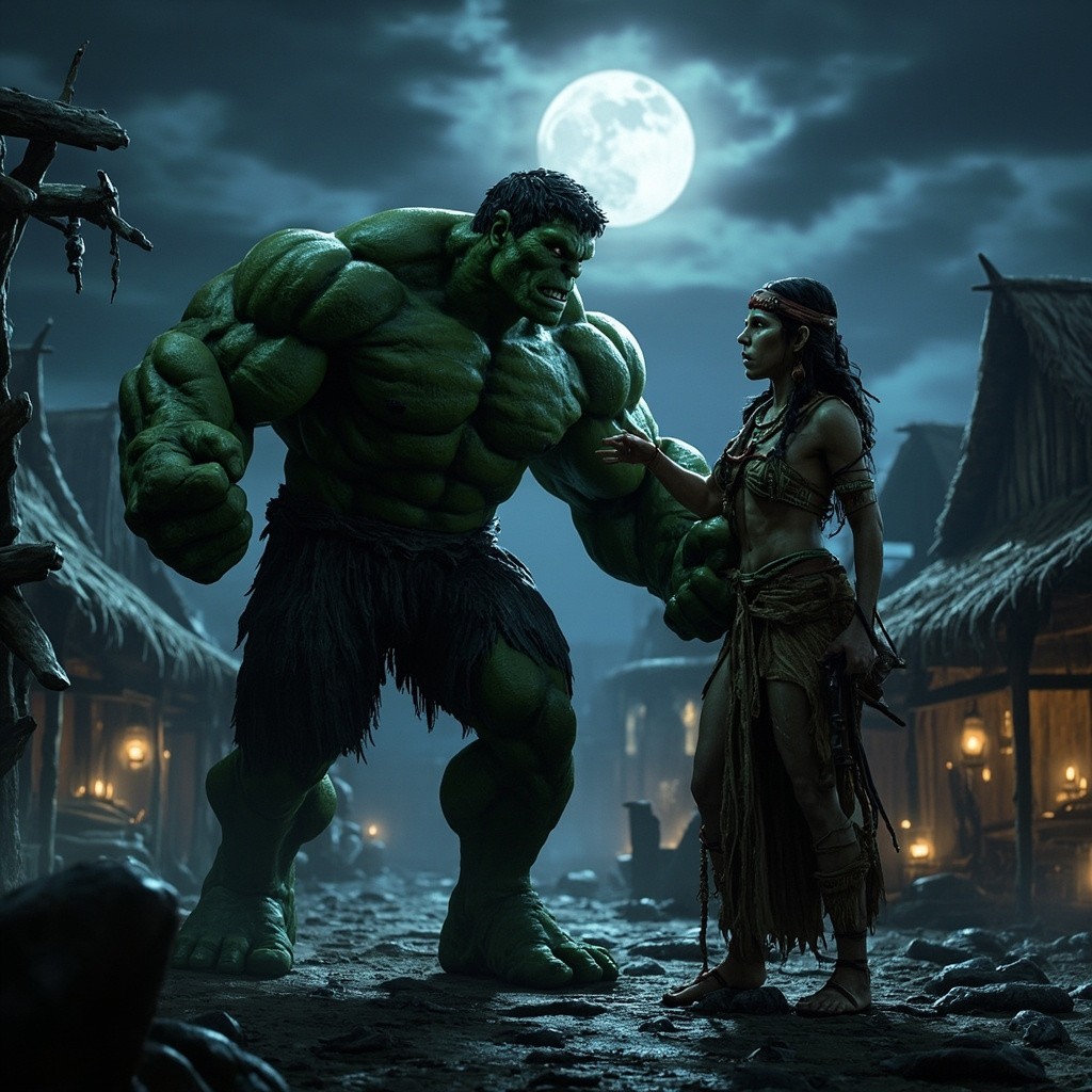 Hulk Character with Worried Indian Village Mother in Moonlight