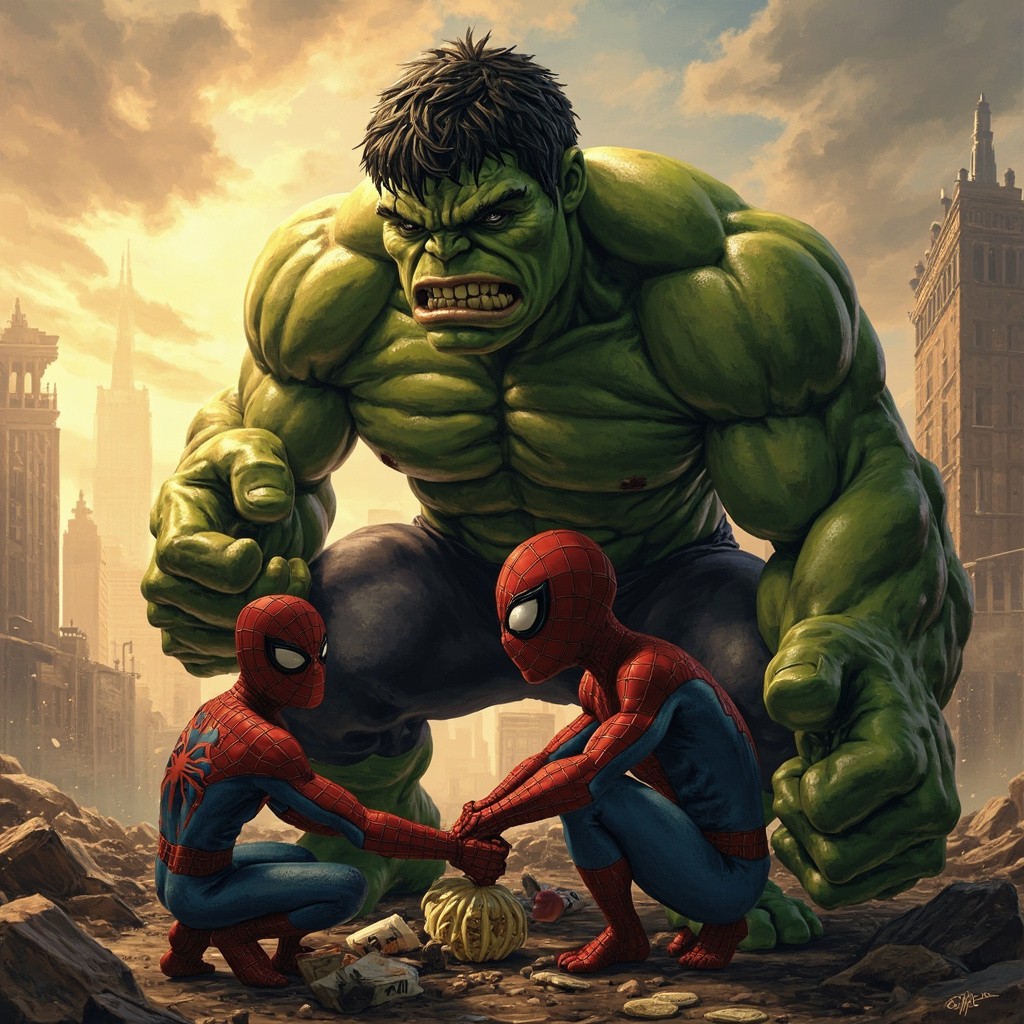 Hulk Begging, Rich Spiderman Laughing, Shocked Spiderman