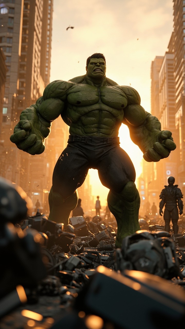 3D Hulk Victorious in City Amidst Broken Robots