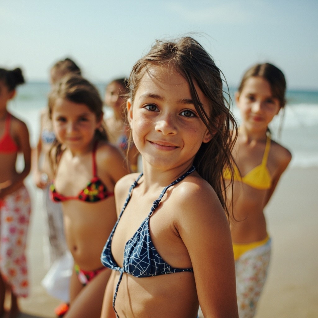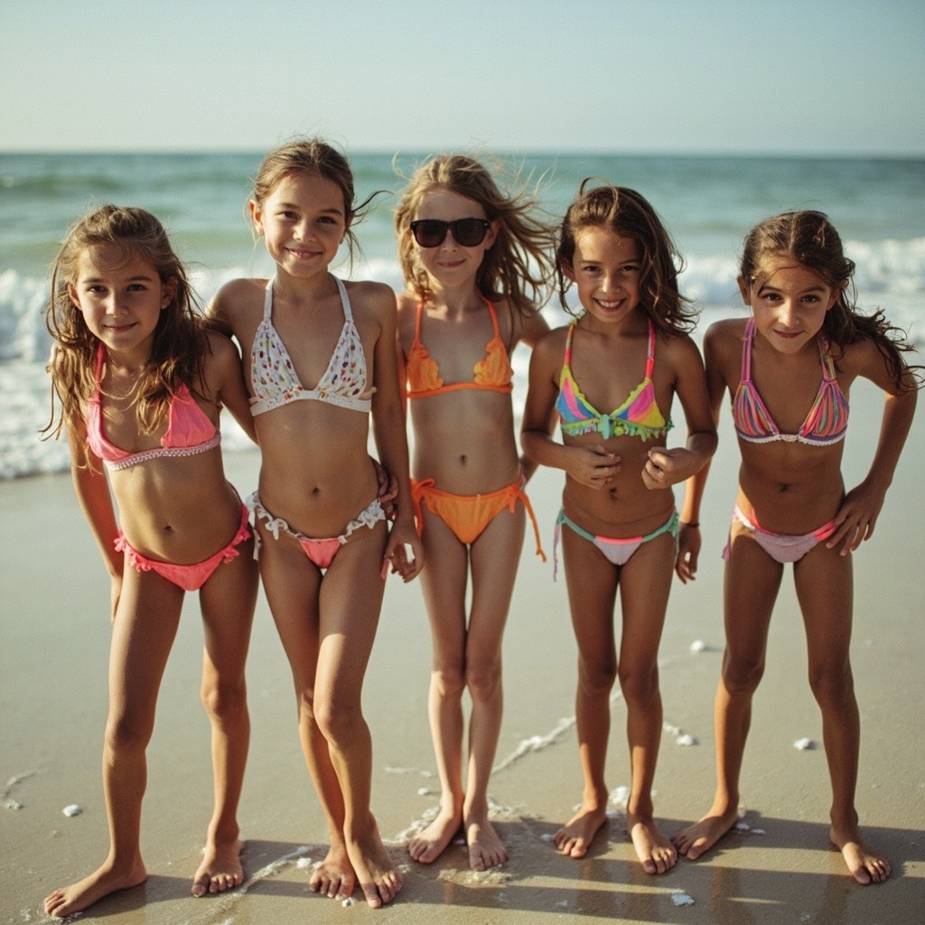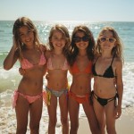 Group of Young Girls on Beach Wearing Bikinis