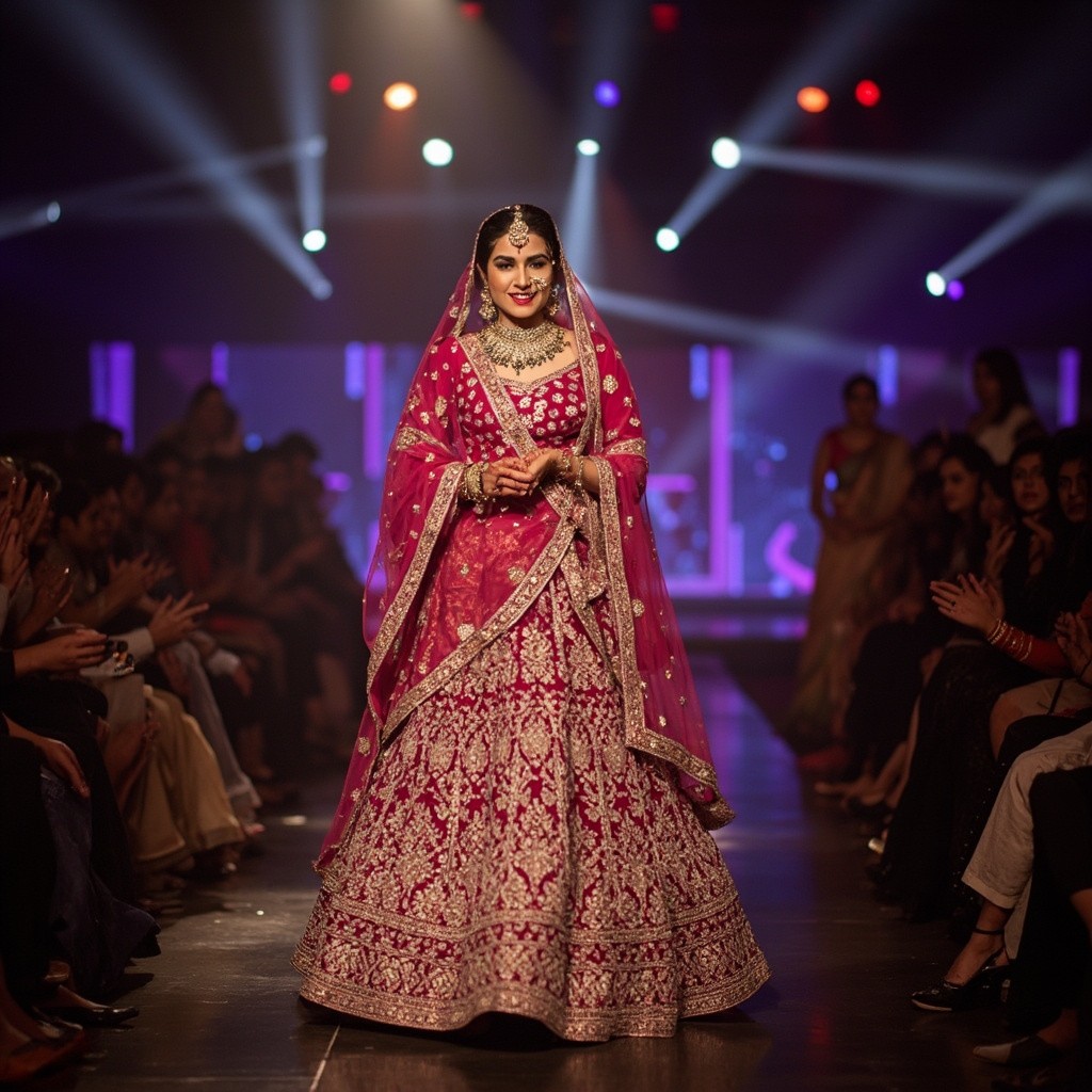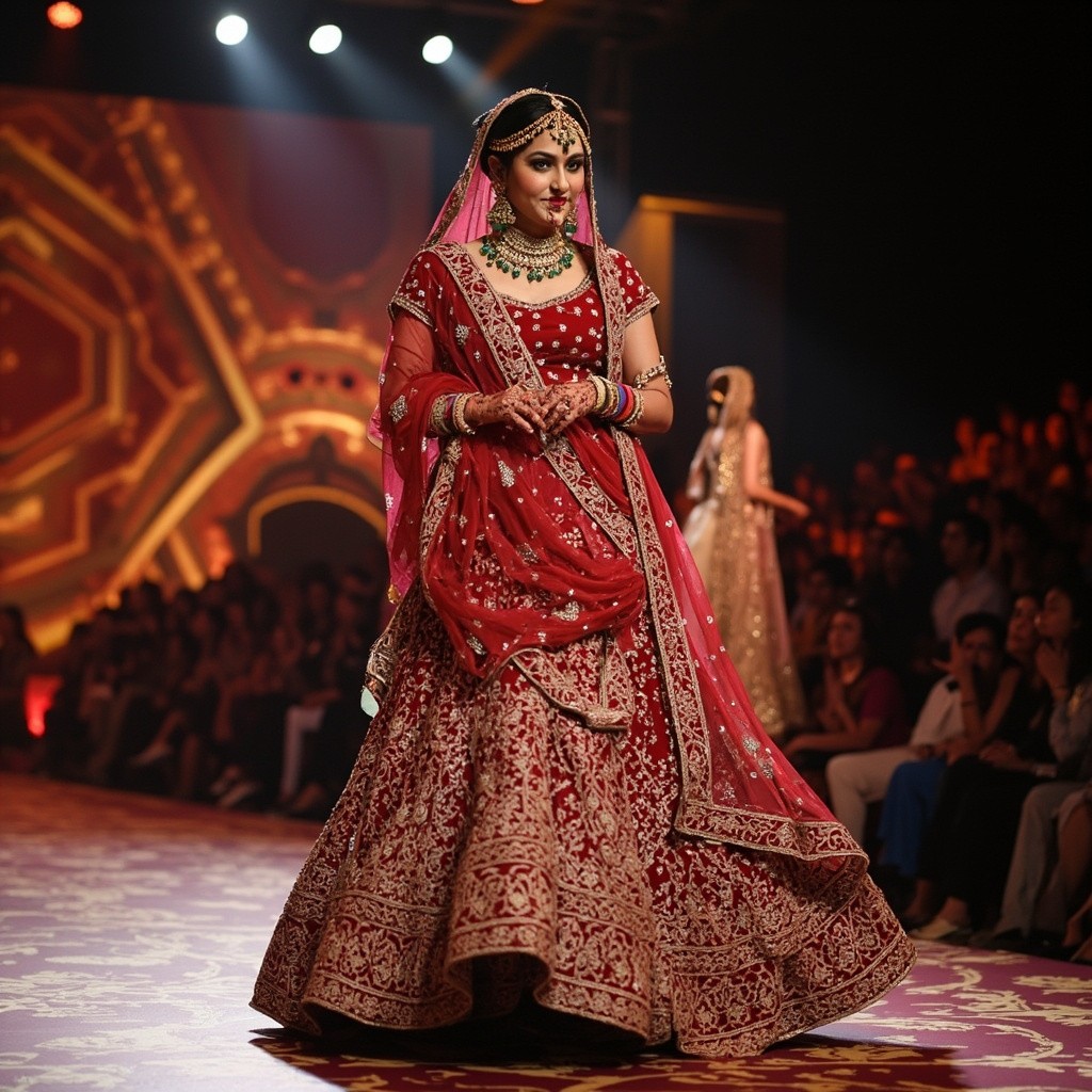 Indian Bride Walking on Stage in Heavy Lehenga
