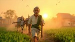 3D Cartoon of Indian Farmer Ramlaal Walking to Fields at Sunrise