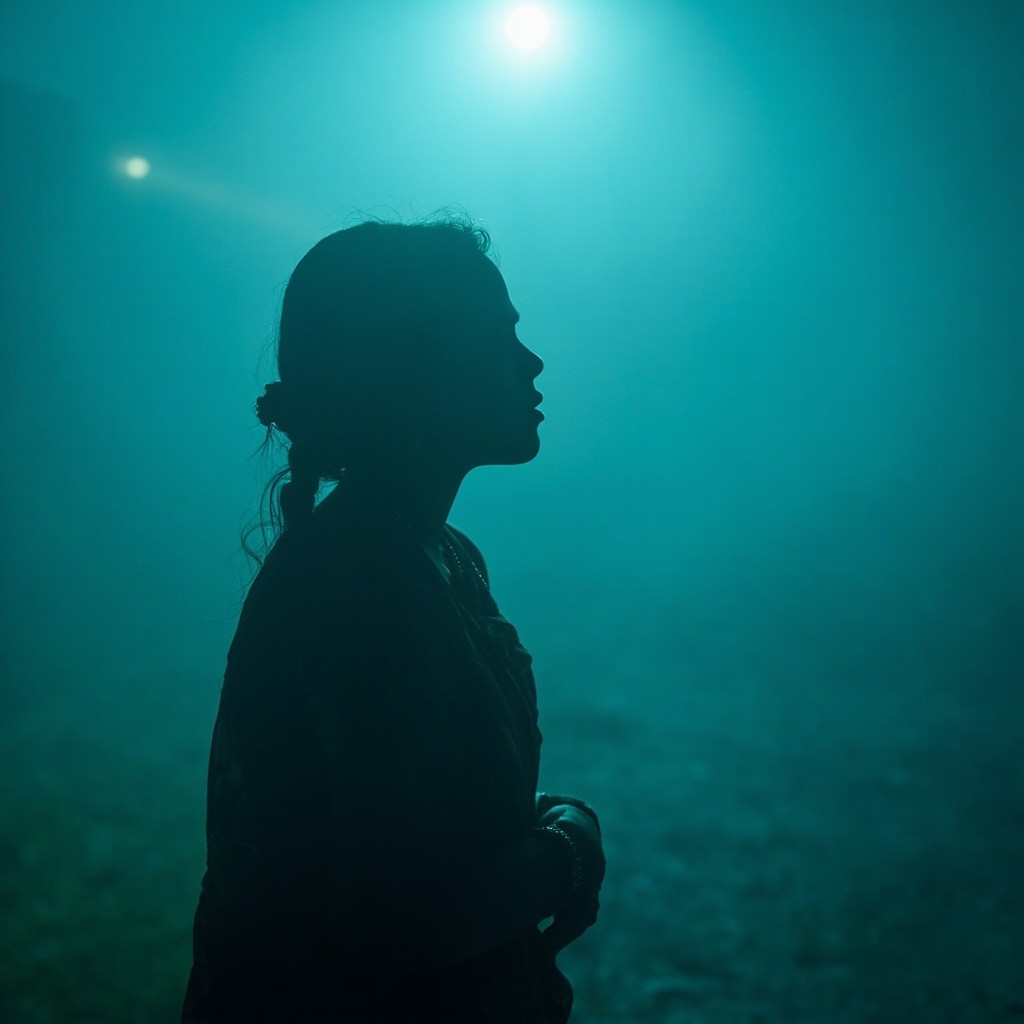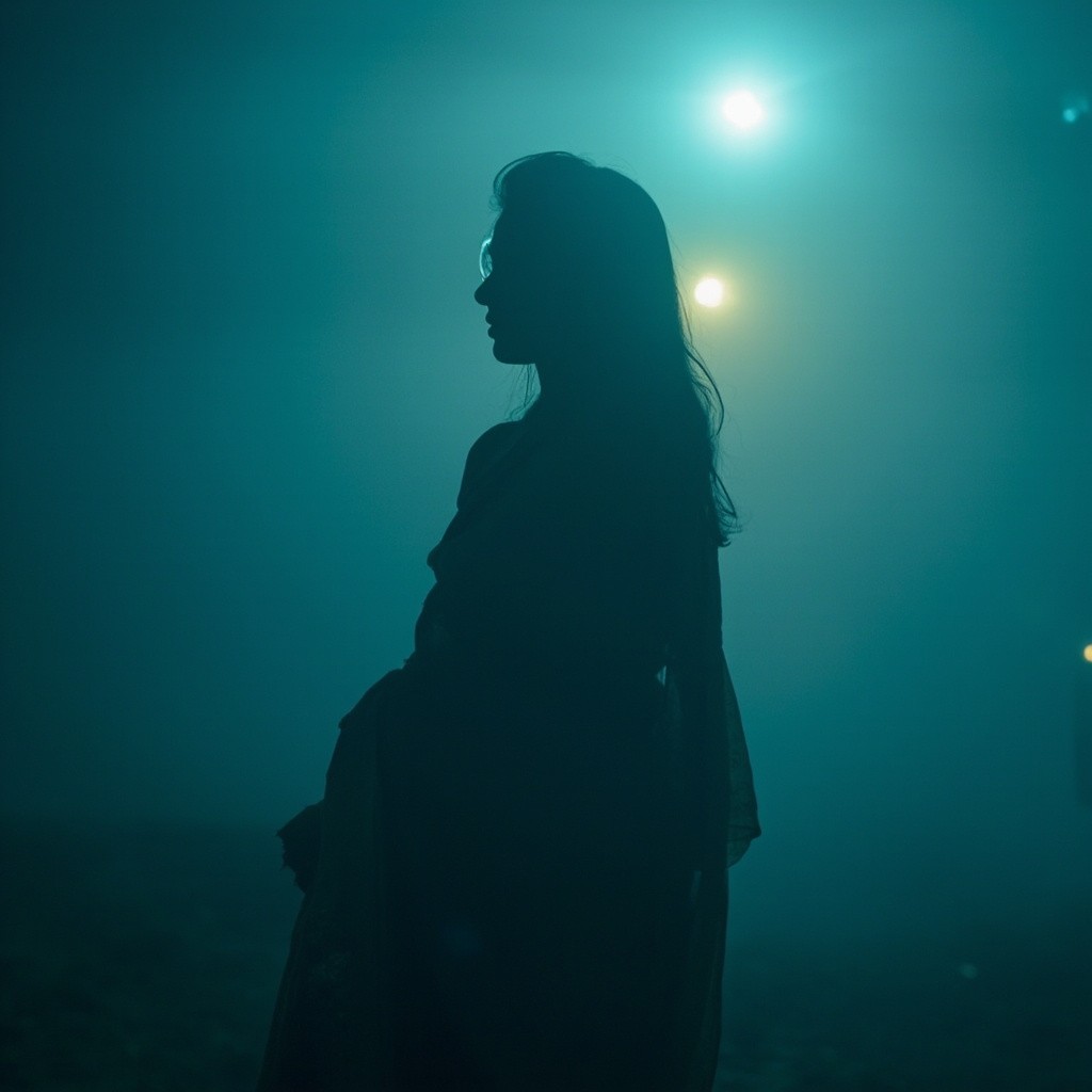 Indian Girl in Saree with Side Face Visible in Fog