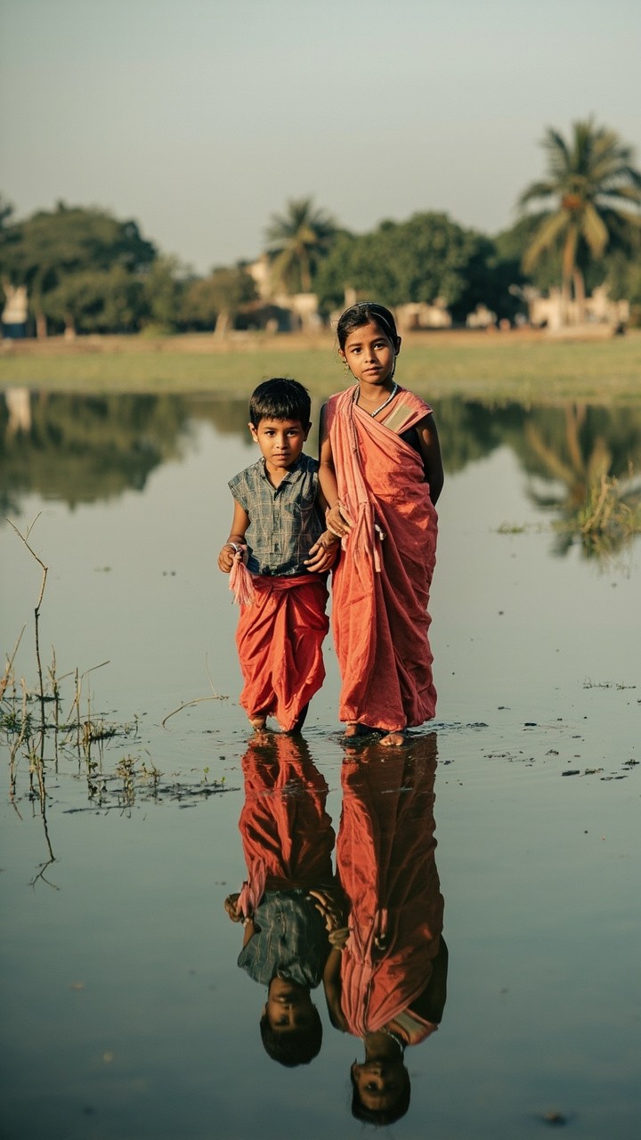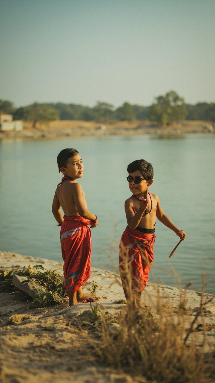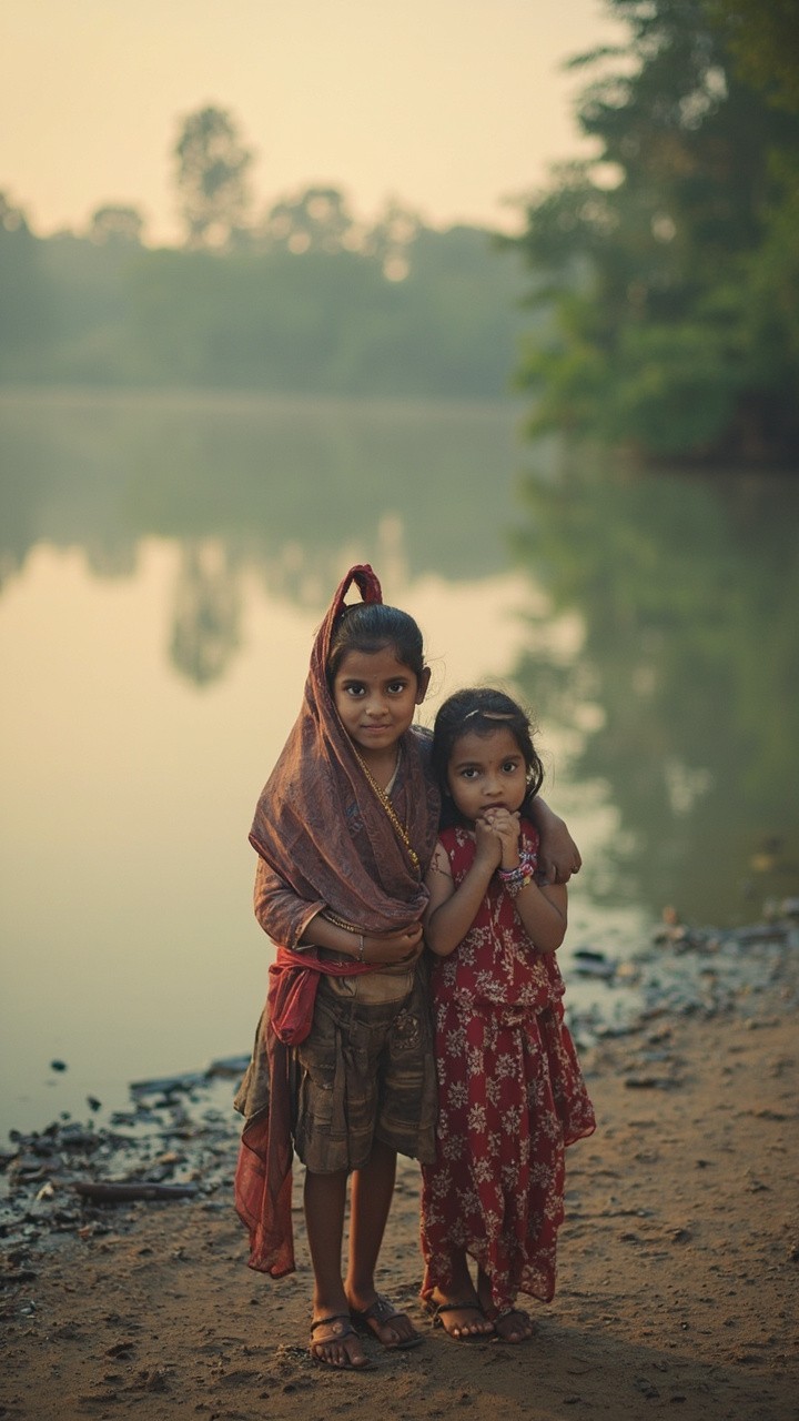 Indian Kids by a Lake