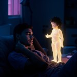 Young Indian Man in Bed with Glowing Spirit of Indian Girl