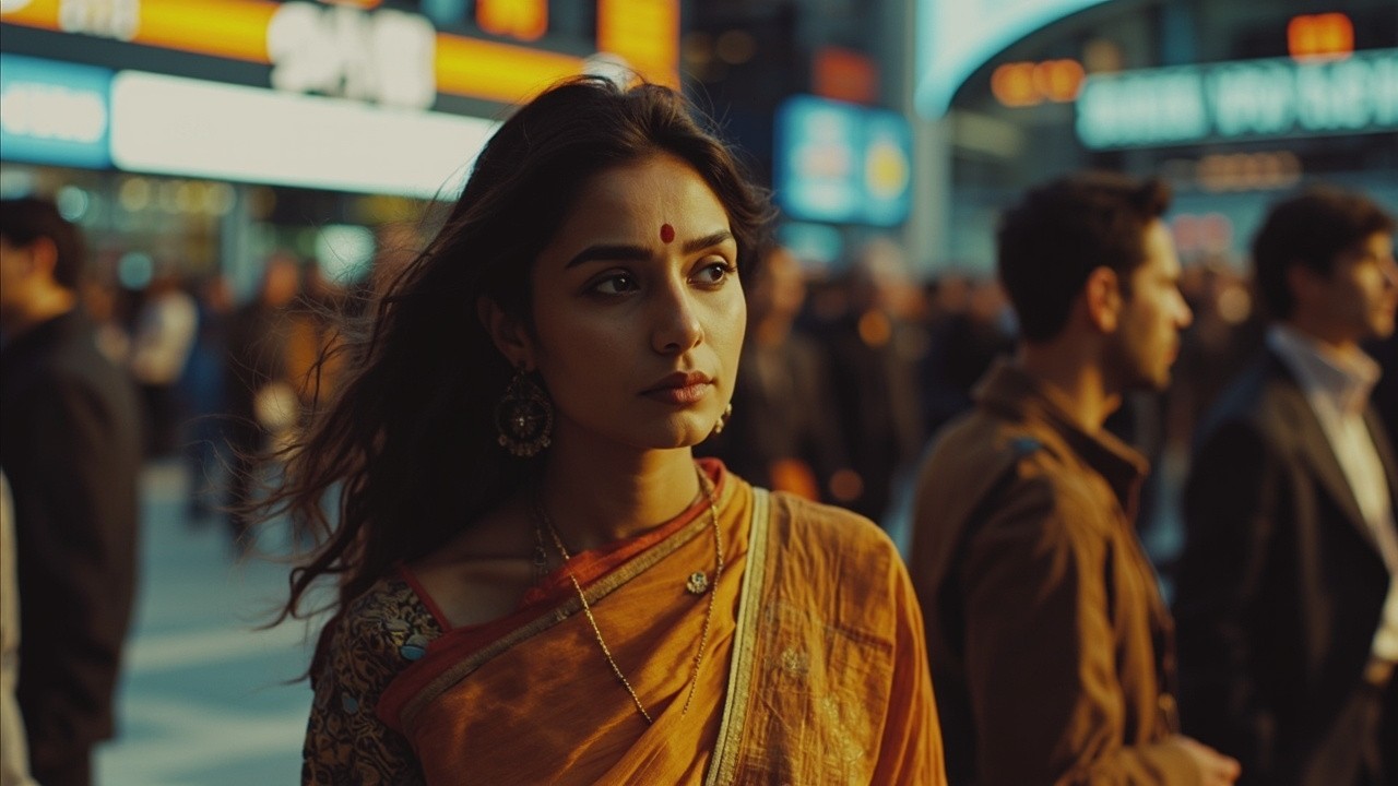Indian Modern Woman Standing in Public