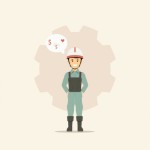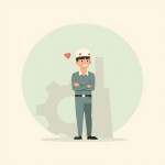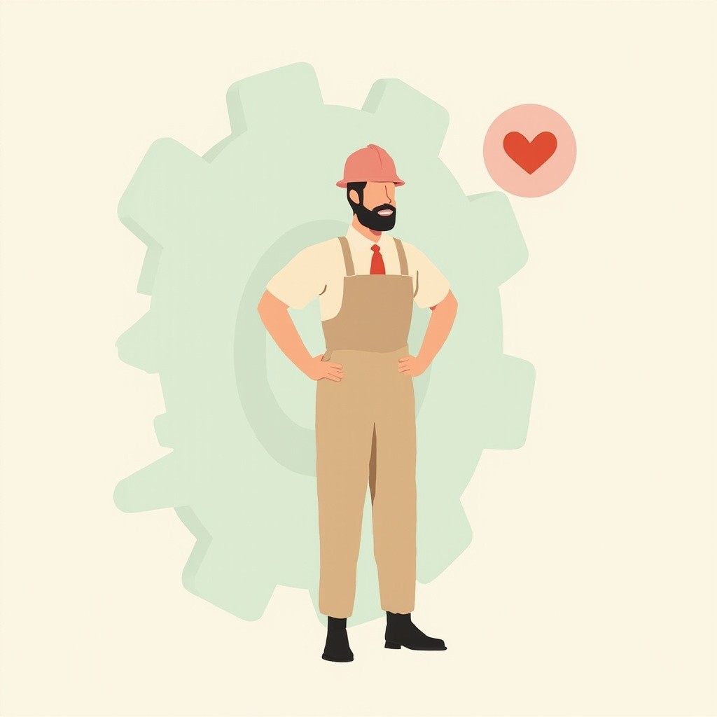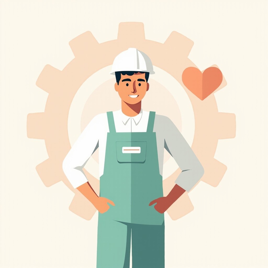 Minimalist Industrial Worker with Gear Background and Heart Icon