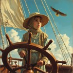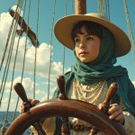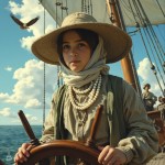 Iranian Girl in Hijab and Broad Hat Steering Ship