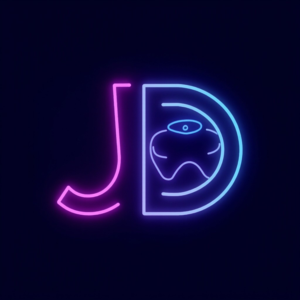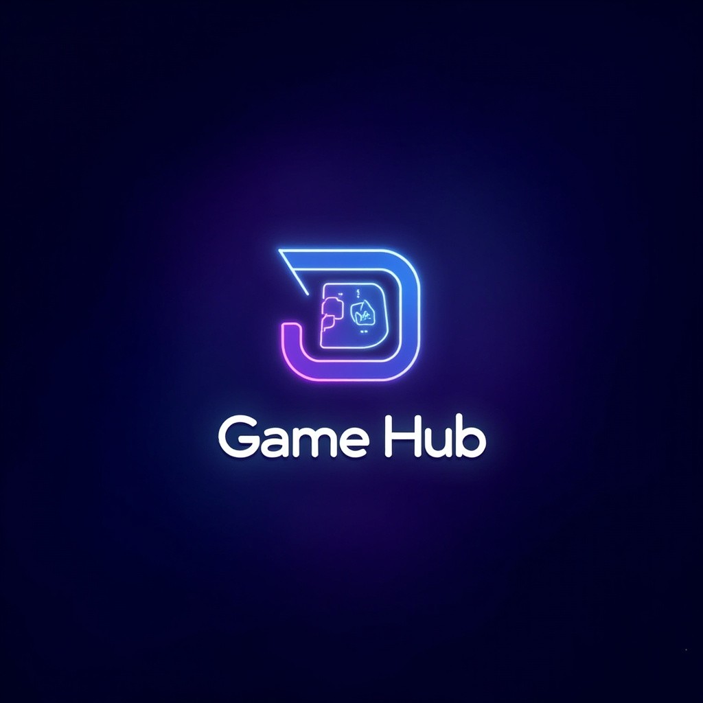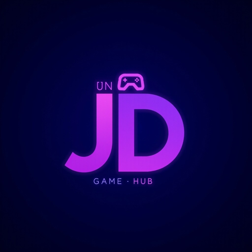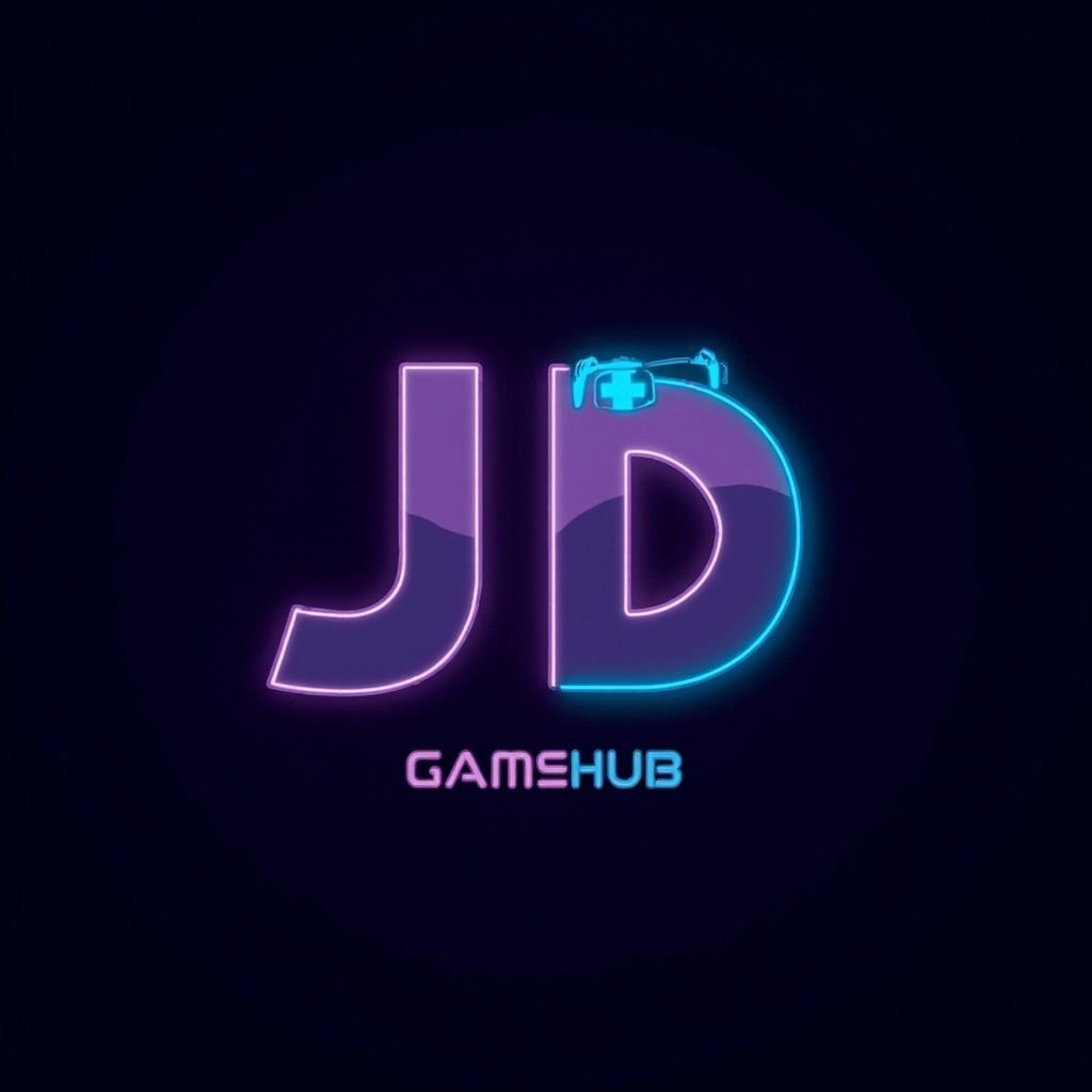 Neon Purple and Electric Blue JD Logo with Game Hub Text and Controller Icon
