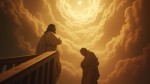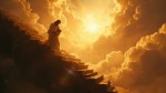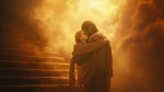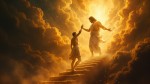 Jesus Descending Staircase and Embracing a Person in Heaven