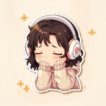 A super cute, stylized miniature cartoon character of a young girl, drawn in a trendy and modern illustration style. She has shoulder-length wavy dark-brown hair, soft closed eyes, and a peaceful, lonely expression on her face. She wears oversized white headphones and a cozy pastel-colored hoodie with long sleeves slightly covering her hands. Her small size and delicate features give her a pocket-sized, collectible figure look. Background is soft and minimalistic, with gentle lighting that adds warmth and calm. Style: kawaii, contemporary cartoon, soft shading, clean lines, perfect for stickers or character design.