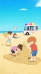 Animated Beach Scene with Kids, Sandcastle, Kite, and Ice Cream Truck