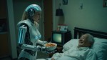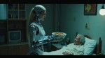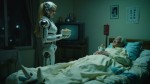 Korean Female Robot Serving Breakfast to Elderly Chinese Man in Bedroom