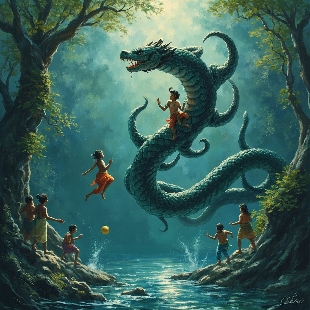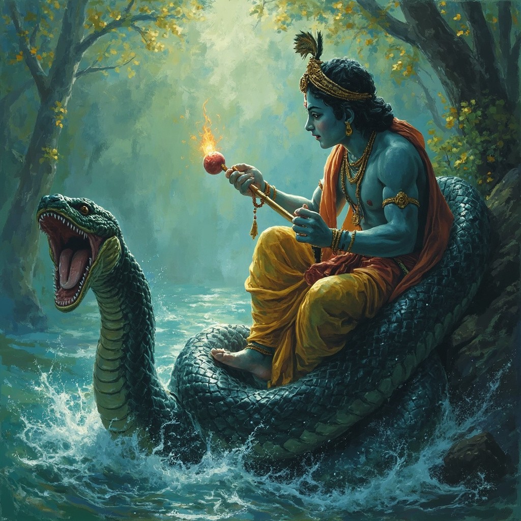 Lord Krishna Dancing on Kaliya Snake in Yamuna River