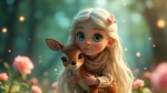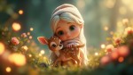 Enchanted Forest with Cute Little Girl Holding a Fawn, 3D Animation