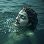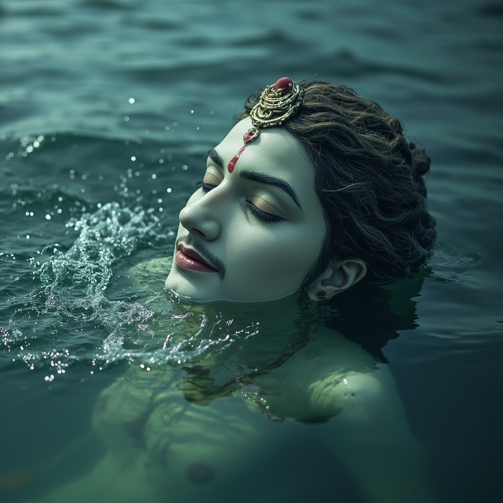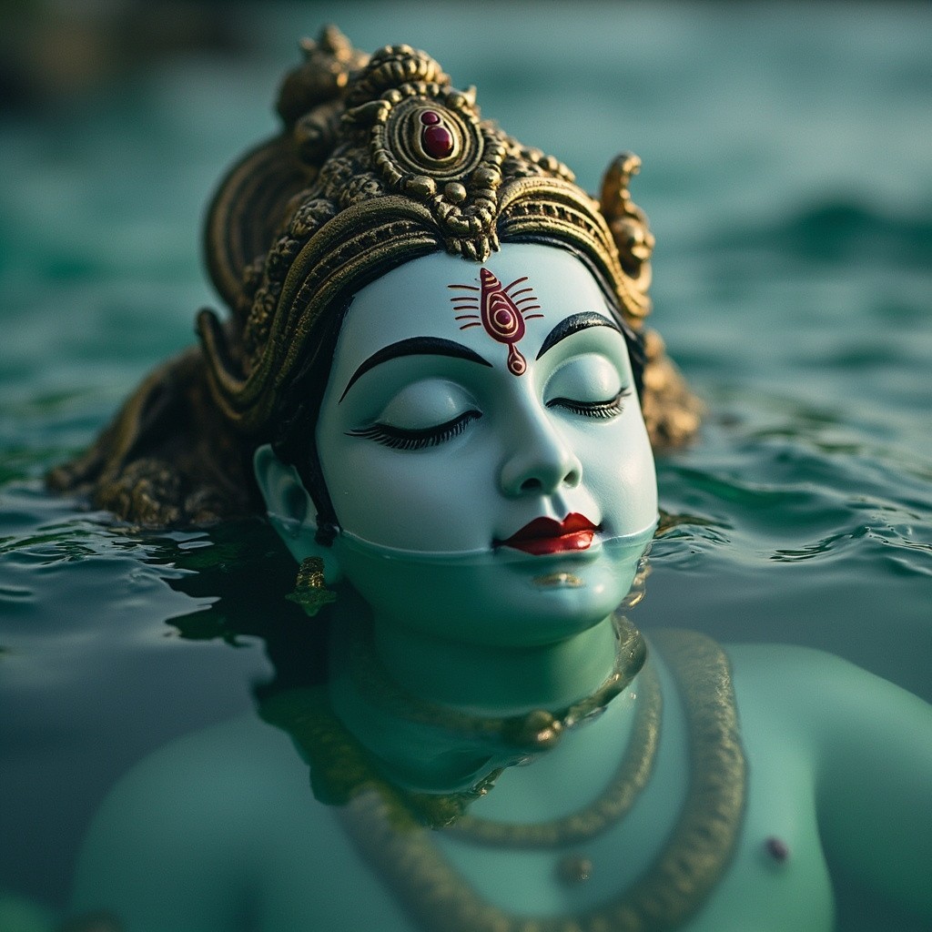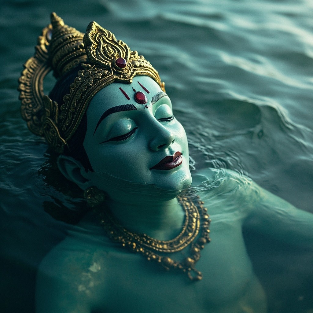 Lord Vishnu Submerged Halfway in Water, Eyes Closed