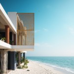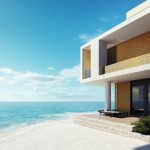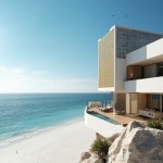 Luxury Architectural Beach House with Blue Sky and Calm Sea