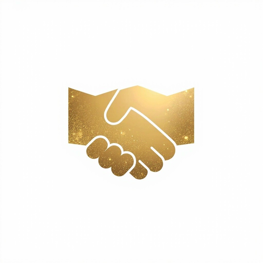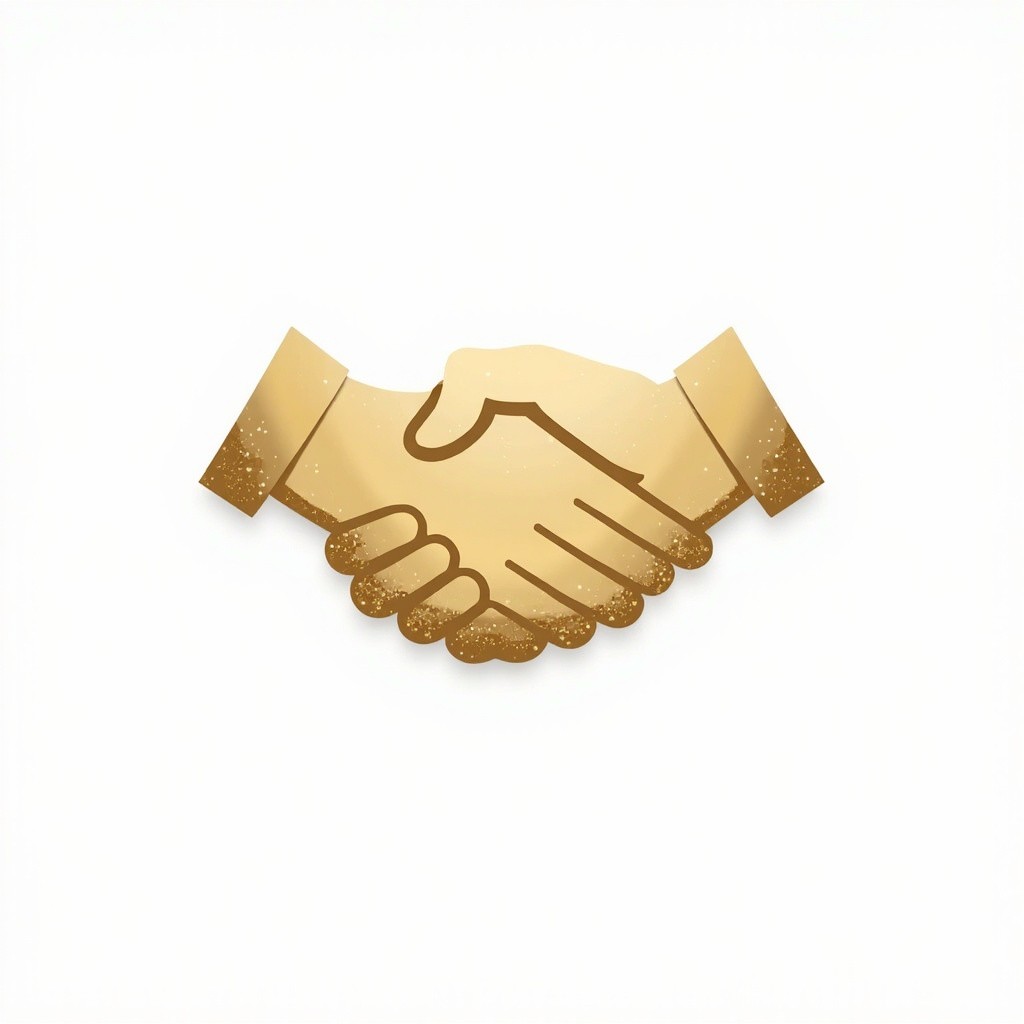 Premium Metallic Gold Gradient Handshake Icon on White Background