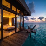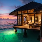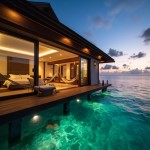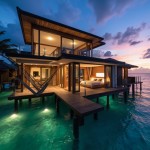Luxury Villa on Stilts with Sunset Reflection and Open-Plan Layout