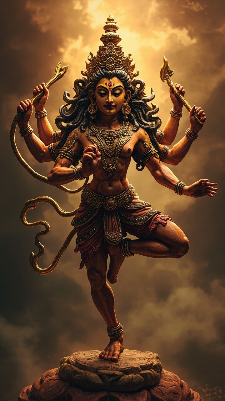 Mahishasura Standing on One Leg, Side View