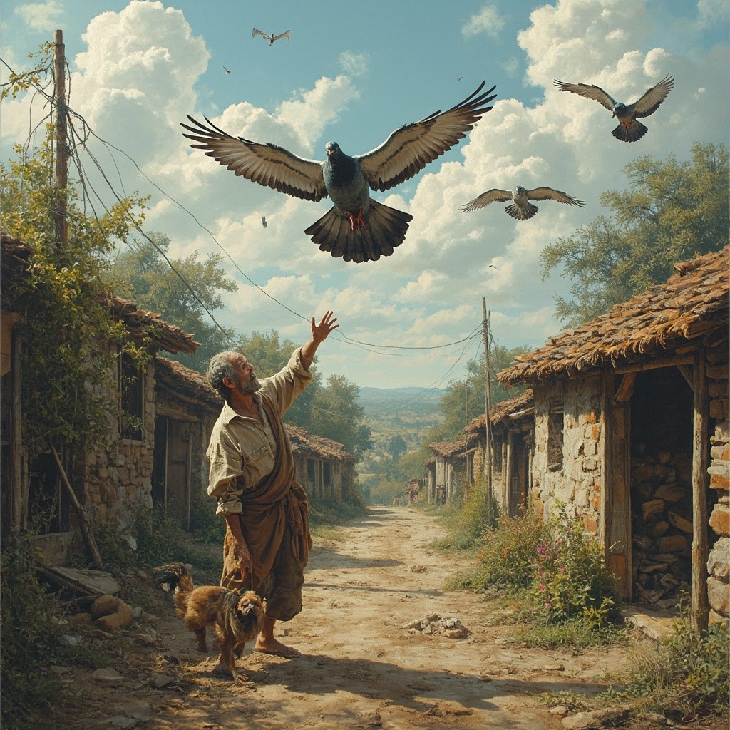 Man Captures Large Pigeon in a Village