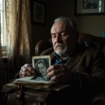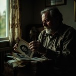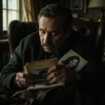 Video Description in English (Duration: 2 minutes): A man is sitting alone in a cozy, softly-lit room. The camera focuses on his hands as he flips through a stack of old letters and black-and-white photos, showing a hint of nostalgia in his eyes. He carefully gathers the letters and pictures, placing them into a worn-out leather bag, as if he’s preparing to leave for somewhere far away. Suddenly, his eyes stop on a single photograph—a picture of a woman he once loved. The camera zooms in to capture his lingering gaze on the photograph, his eyes welling up with tears. He sits there motionless, lost in his memories, as the soft light plays across his face. Gentle piano music fills the background, adding to the bittersweet feeling. As he holds the photograph close, the video transitions to a series of flashbacks—moments of love, laughter, and tenderness with the woman. These memories are woven together with quick cuts, like fleeting glimpses of a past that will never return. The video ends with him closing his eyes, holding the photo tightly to his chest, as he lets out a deep sigh. The final shot fades out on the photograph, showing her smiling face one last time.