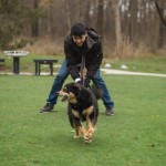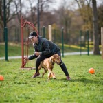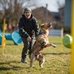 Person Playing at Dog Park Equipment