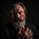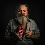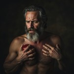 Man with Gray Beard Tearing Heart Out, Long Straight Hair, Pain