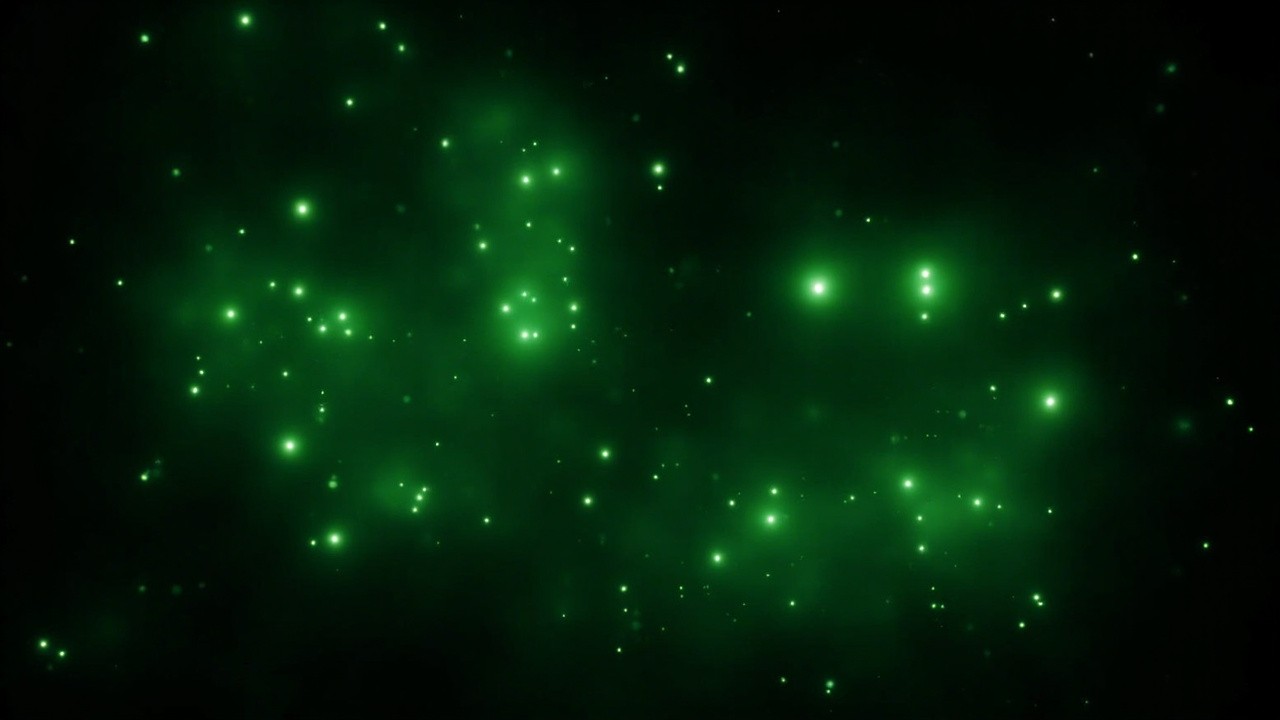 Dark Black Background with Green Glowing Lights and Christmas Shades